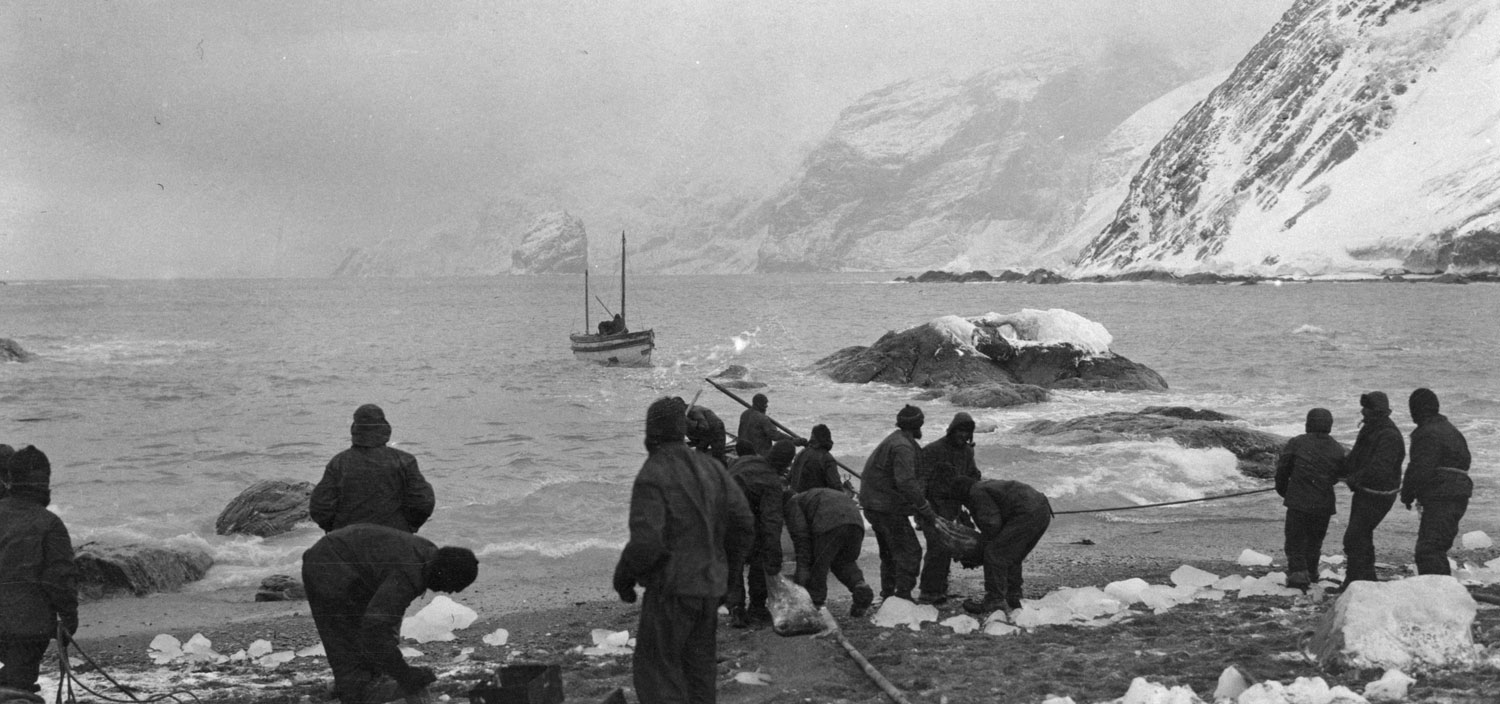 Here's a picture of the arrival of the first boat from the Yelcho to the island. The crew was taken off in two boatloads and taken to Punta Arenas. Not a single crew member had been lost.
