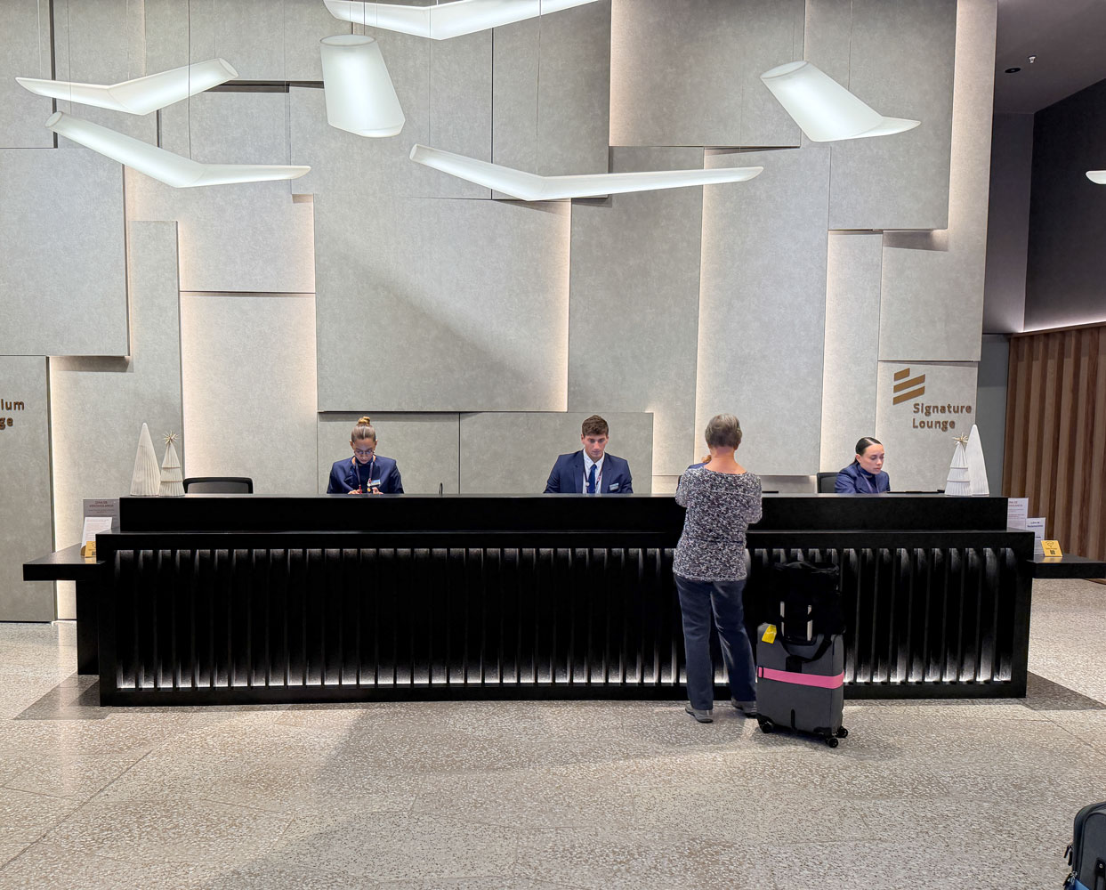 We found the LATAM lounge and had to convince them that they should let us in with Premium Economy tickets because we originally had Business Class.