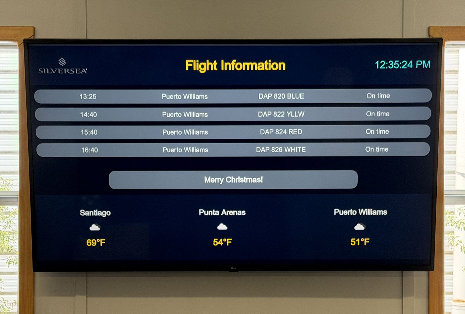 This time we're going to Puerto Williams which has a shorter runway (WPU - 4,724 foot runway) and can only take smaller aircraft. Moving all the ship passengers will take multiple aircraft and that's why we have groups. It's even worse, because the Silver Endeavour is also sailing from Puerto Williams on the same day, so there are over 300 guests to move. They have four groups, with the last group leaving about 4:40pm. That's going to have them arriving at the ship after 8pm.