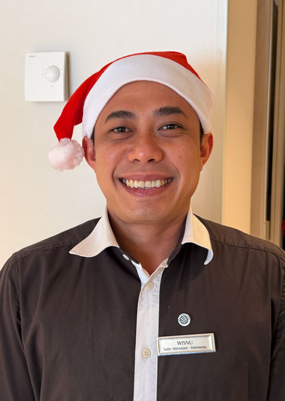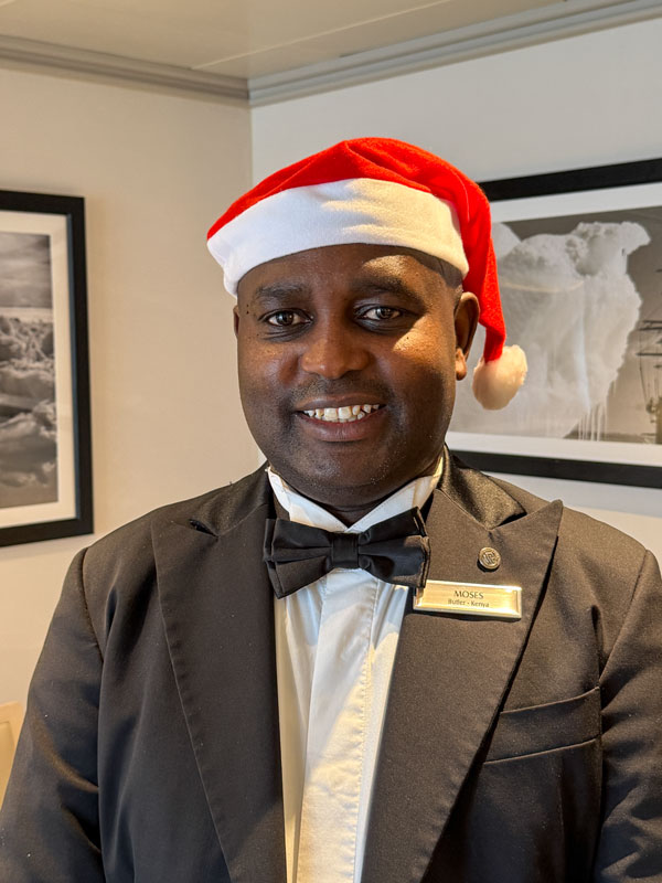 Our butler, Moses (from Kenya), and room attendant, Wisnu (from Indonesia), were there to greet us.
