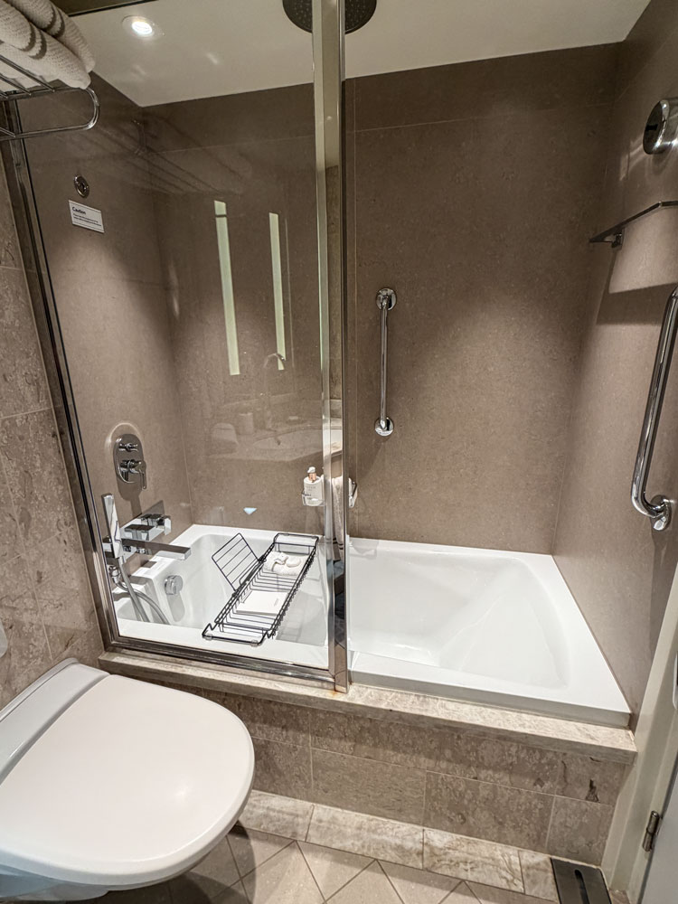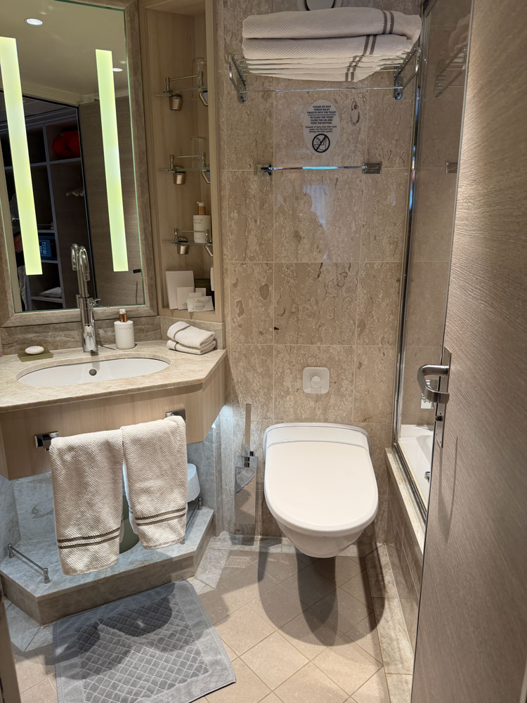 And has a tub shower, which I loathe. They're hard to get in and out of and can be slippery. I always ask for a cabin with a walk-in shower, but when you get an upgrade, you get what they give you. I know, first world problem.