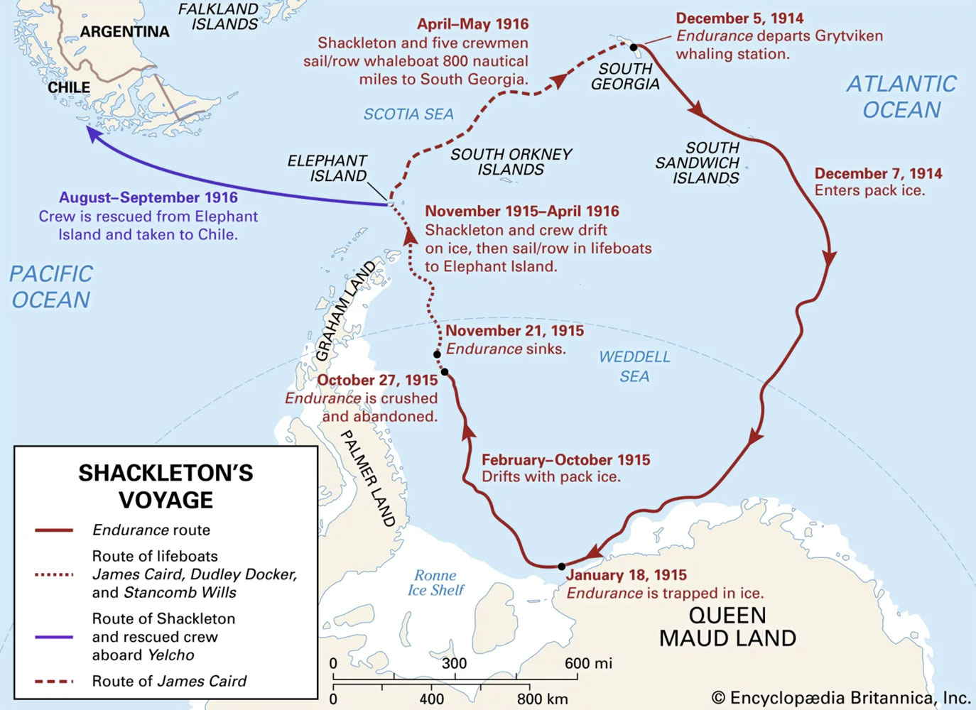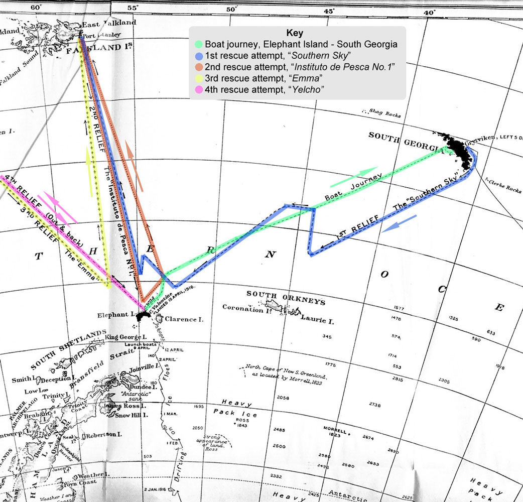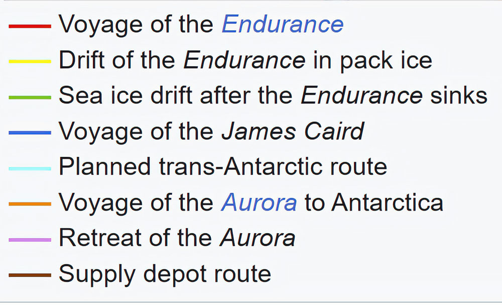 I'm getting a bit ahead of myself, but here's a map of the path taken by the Endurance and the Shackelton Expedition, along with important dates.