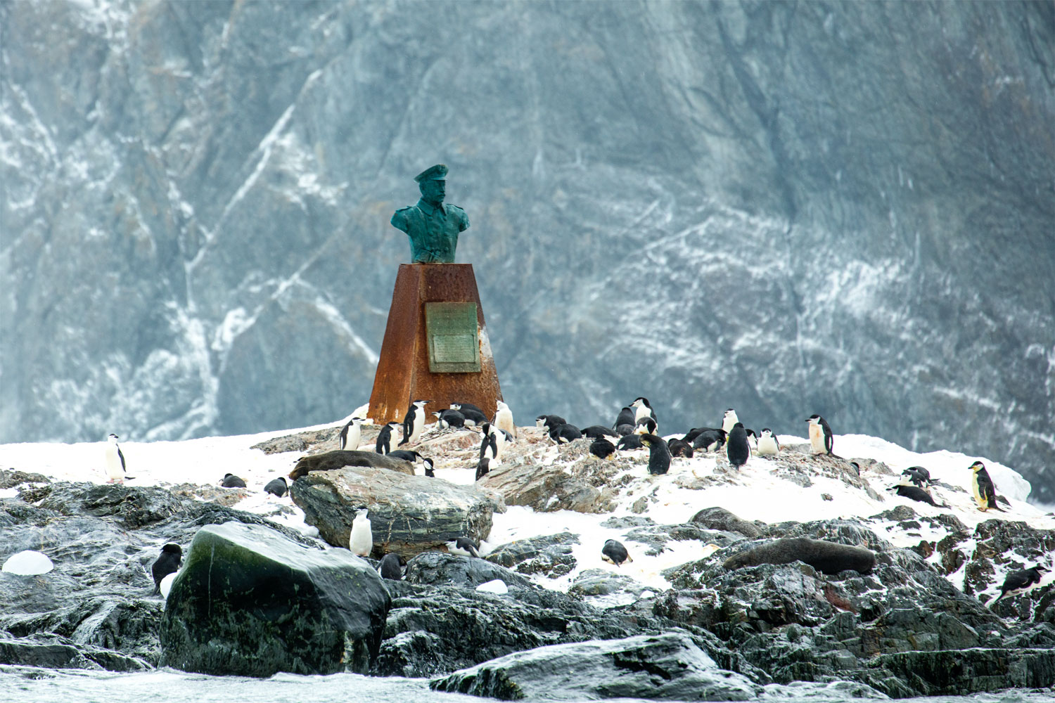 In 1987 Chile placed a bust of Captain Luis Alberto Pardo Villalón on Point Wild of Elephant Island.