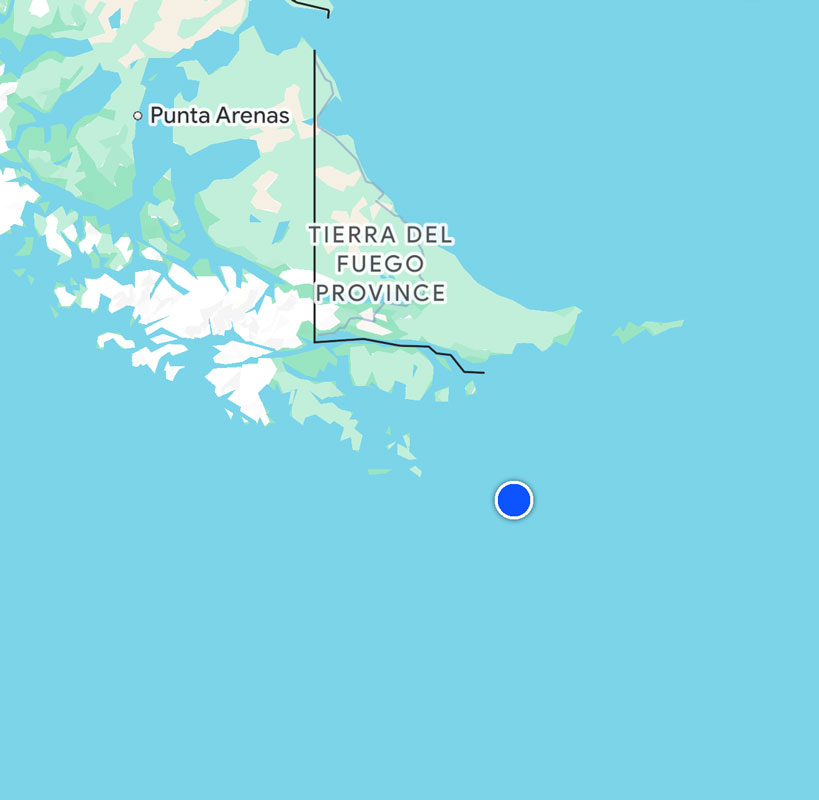 1/7/2026 (Wednesday) - We're at 56°3'18"S, 66°1'9"W at 6am this morning. We're nearingTierra Del Fuego and the Beagle Channel. We'll arrive at Puerto Williams this afternoon. We're scheduled to arrive about 5pm but will get there earlier. On arrival, Chilean customs and passport control people will board the boat and review our passports for entry to Chile. This is required because we stopped at ports of another country (Falkland Islands and South Georgia Island).