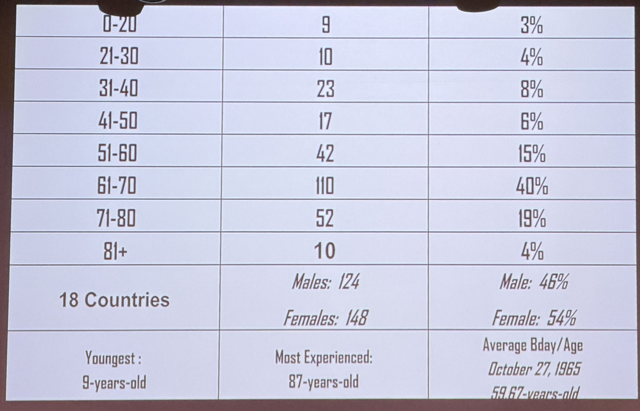 These were the age ranges. There were only eight other people aboard in our age range. The majority were in the early retirement age group.