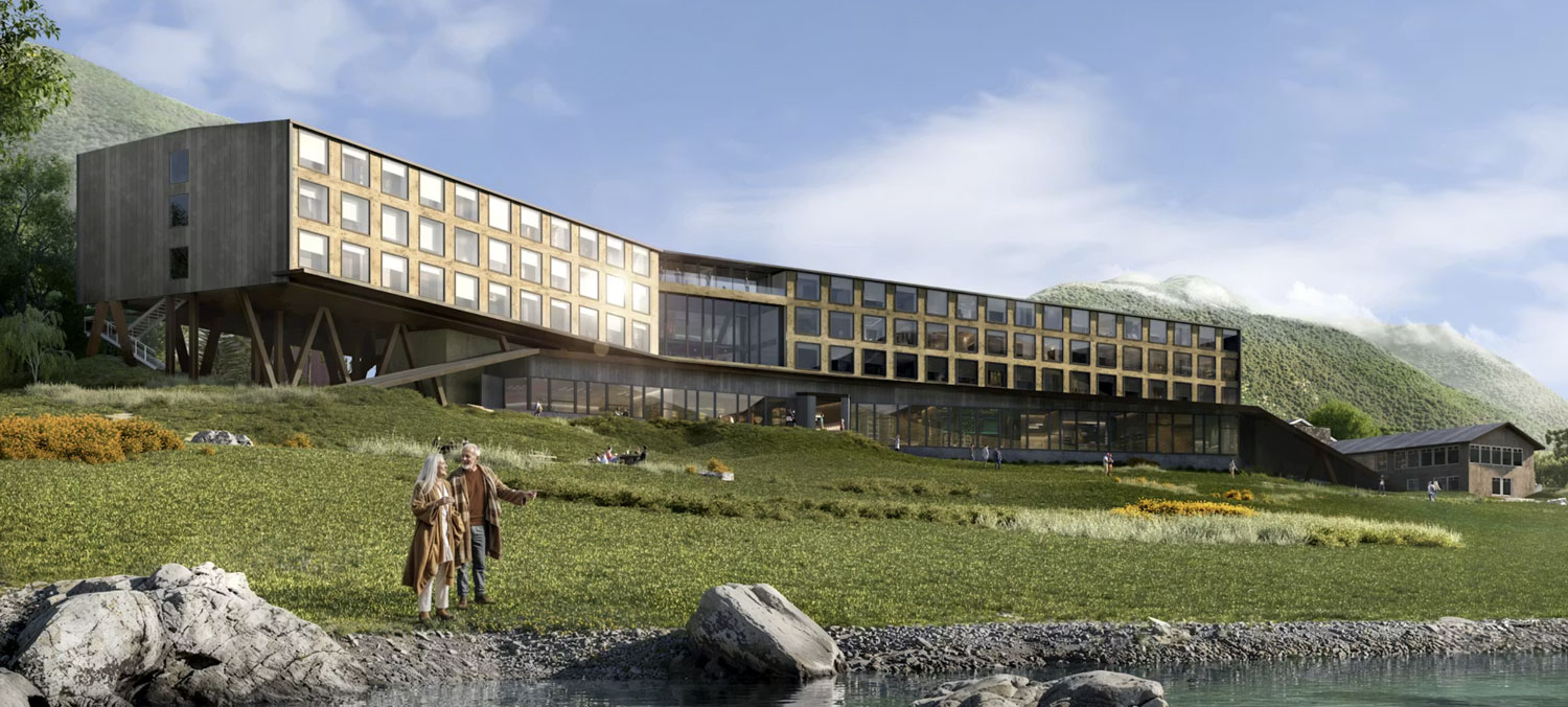 During the drive, we passed the new hotel that Royal Caribbean Group (which owns Silversea) is building at Puerto Williams, "The Cormorant at 55 South". Here's a picture of what it's planned to look like.